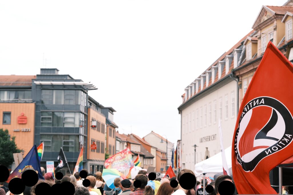Generell ist es wunderschön zu sehen, wie viele Menschen dieses Jahr an den Thüringer CSDs teilnehmen und wie normal antifaschistische Positionen hier sind – gerade, wenn mensch in die Großstädte mit ihren durchkommerzialisierten „Prides“ schaut, die teilweise sogar versuchen, Antifa-Symbole zu verbieten.