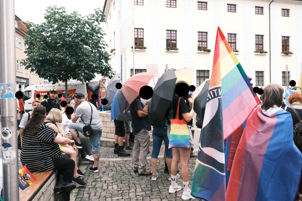 Auch in Mühlhausen zeigten sich die Teilnehmenden völlig unbeeindruckt von den rechten Provokateur*innen. Stattdessen wurde in vielen Redebeiträgen auf die aktuelle politische Lage eingegangen und an den Ursprung der Prides erinnert: Stonewall was a riot!