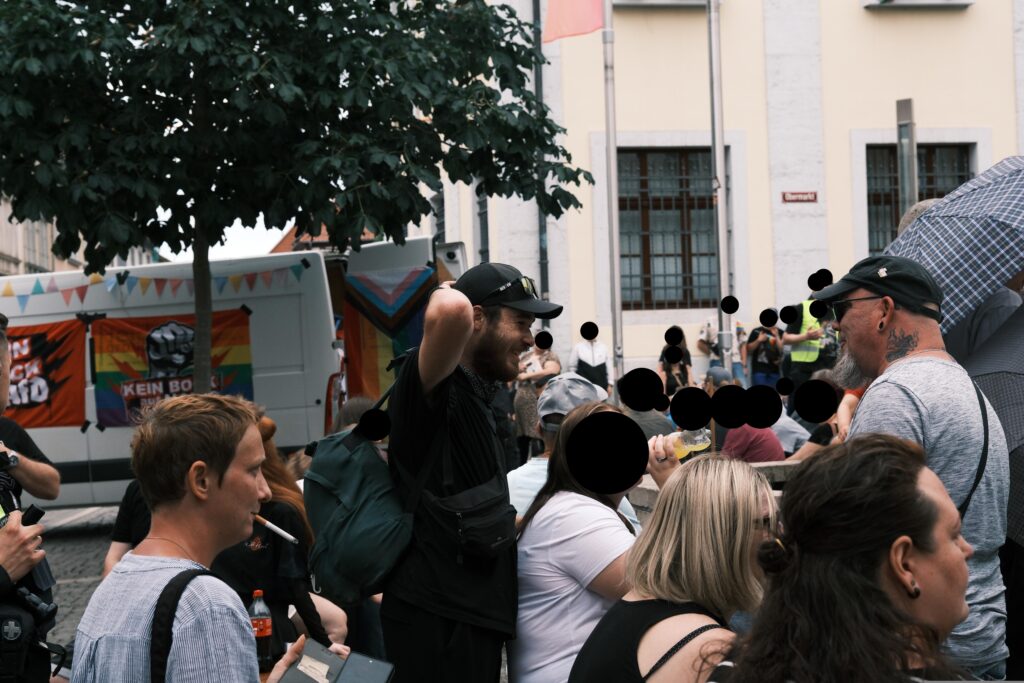 Dies alles ist zudem erfolgt, obwohl bisher noch keine koordinierten, größeren Gegendemonstrationen stattgefunden haben oder auch nur eine größere rechte Mobilisierung gegen einzelne CSDs in Thüringen. Das zeigt, wie selbstbewusst Nazis mittlerweile auftreten und mit welchem Selbstverständnis sie sich queeren Veranstaltungen bis auf wenige Meter nähern. Sie suchen ganz offensichtlich nach Gelegenheiten und Momenten der Unachtsamkeit; sie wähnen sich aber auch in einer gesamtgesellschaftlichen Lage, die ihr Handeln unterstützt.